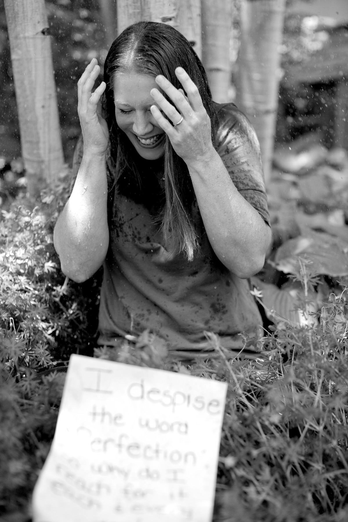 These note images are interesting beasts. Everyone wants to do one. About half of the people know what they want theirs to say. About half from that half are willing to do whatever to make the concept of their note interesting. I like that quarter. Tatum was part of that quarter. And, for the record, she is the last person you would put in that quarter and still the first one to offer. After waiting about 3 hours for rain, because we thought it would be really interesting to do her note in the rain, we gave up and decided to ask her daughter to hold a hose over her head. Daughter thought that was a fabulous idea, but her 3 year old son wasn’t down. He found it most upsetting that we were basically throwing water on his Mama while we all shrieked like little girls. Sweet boy….worried about his mama being so vulnerable. I was worried about this too. I was sure that she would change her mind, not like the images, not wanting me to post them. But…..she liked them. Turns out her box is bigger than I thought. Maybe even has see-through walls. And a beaded curtain and a lava lamp. Touché, Madam President. Shame on me for trying to limit you to a boring brown box. 🙂